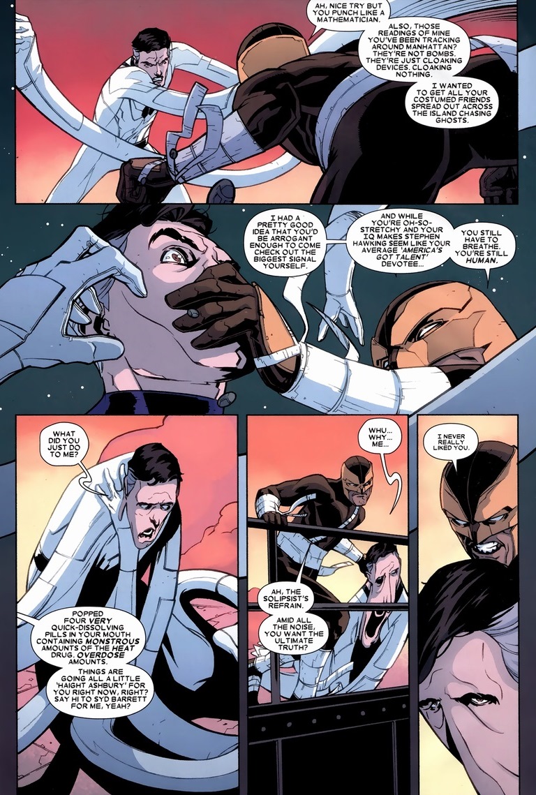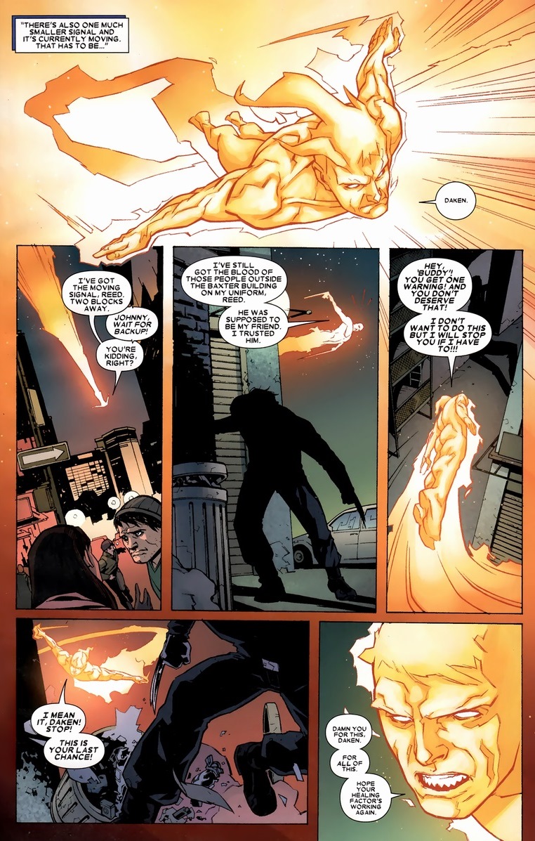 Since Daken’s an emotional mess, he’s resigned himself to his more villainous side. Plus, I bet you never expected a Daken and Mr. Fantastic fight.