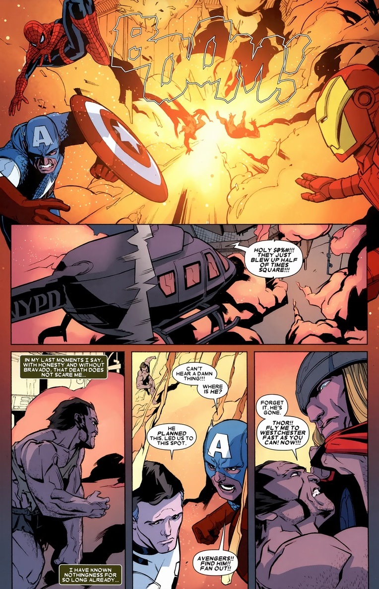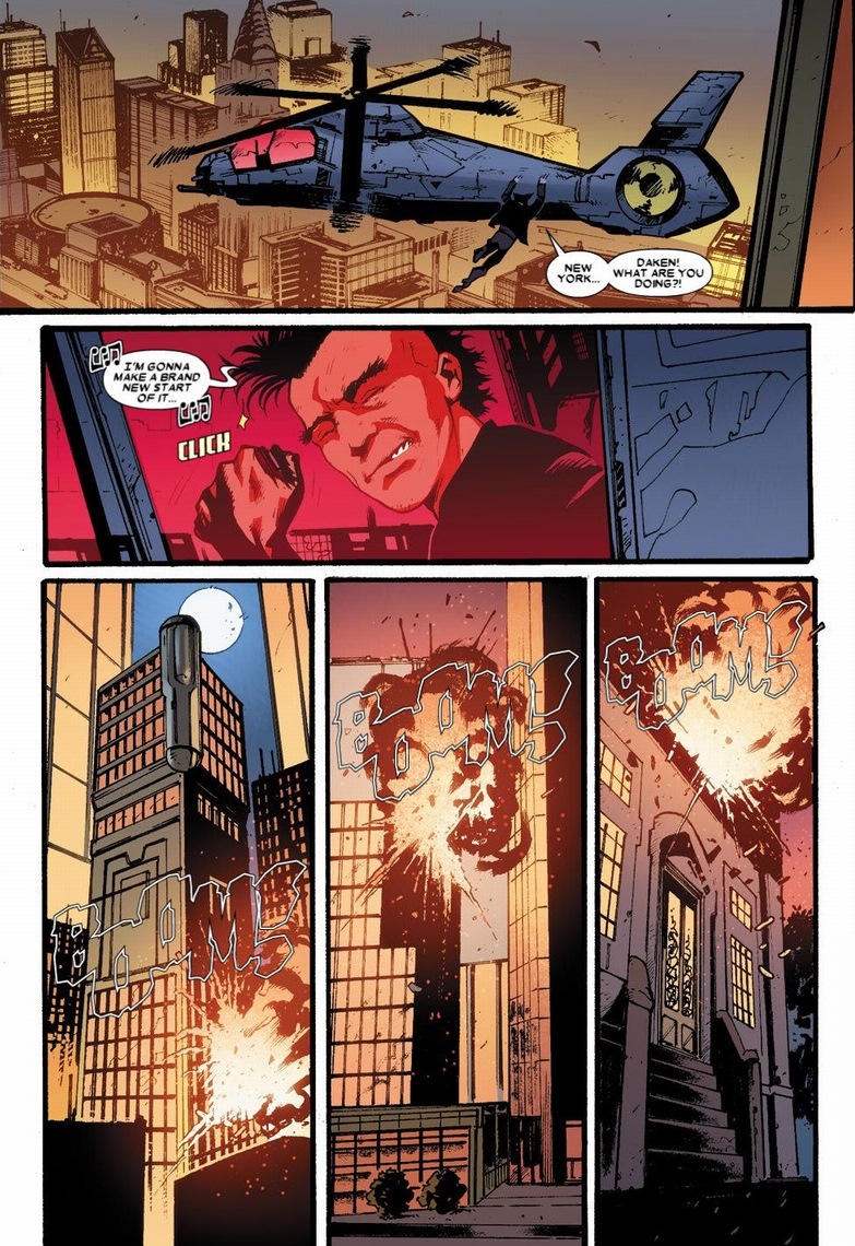 By setting off a few bombs and declaring a few more hidden bombs, the entire superhero community of New York (the Avengers, Fantastic Four, Spider-Man, etc.) sets out to take him down. Daken gets the final stand he wants. Oh, and also to make sure Wolverine gets set on fire: