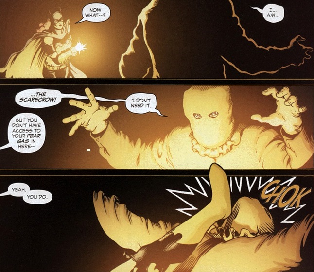 To be fair, Scarecrow has the fighting skills of a college professor. One doesn’t really need to study muay thai when all opponents one faces are frantically trying to claw imaginary bugs off of them. Speaking of academic fighting skills, the Riddler stands just behind the final door, ready to get his well-deserved beating.