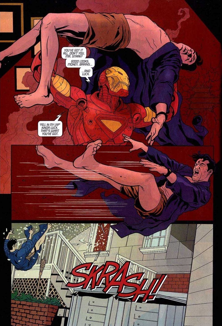 Never a good sign when a superhero murders his own employees. At minimum, that’s piles and piles of paperwork to fill out. But let’s be fair — that’s obviously not Stark. With incidents popping up everywhere, Stark’s life goes quickly down the drain. You know that adage of “the bigger they are, the harder they fall?” Well, considering Stark’s billion dollar company, his position as Secretary of Defense, his career as an Avenger, and dozens of personal relationships — the man has quite a fall ahead of him. Everything sort of stems from no secret identity and a multitude of enemies. More on that in part two.