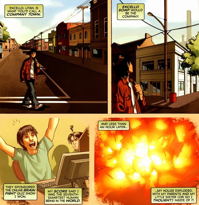 I’m just saying that if Amadeus were a female, he would have been blown to bits. Luckily, teenage hormones don’t cease in the comic book world. Also if you haven’t noticed from his kimchi reference, despite his sidekick status, Amadeus receives critical acclaim for being a positive example of a Korean superhero. Anyway, the abandoned desert town gets weird. Fast. Also, it’s not abandoned.