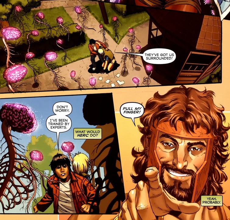 I think Amadeus knew what Pythagoras would do if Amadeus refused to play, essentially ensuring the man’s death. Amadeus, a superhero, doesn’t murder (gosh darn it) and he kinda did murder Pythogoras — even if he got sucked into a game without his consent. Oh well, so’s the tragic life of the hero. Still, if we count that, Amadeus is still thousands of murders behind Hercules. Seriously, I can’t figure out if Hercules has more kills or body hair.