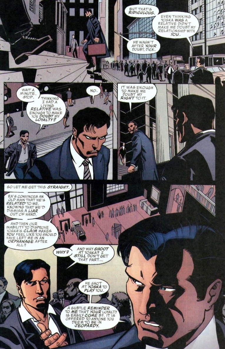 Did you read that last panel in the gravelly Batman voice? Of course you did. So who told Yoska about Dick? Think bad facial hair and petty grudges.