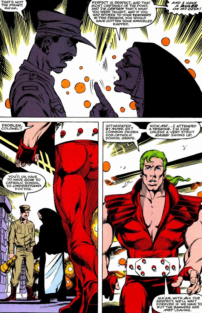 And, of course, he’s Jewish, proven in this scene from Incredible Hulk #373, written by Peter David and drawn by Dale Keown: