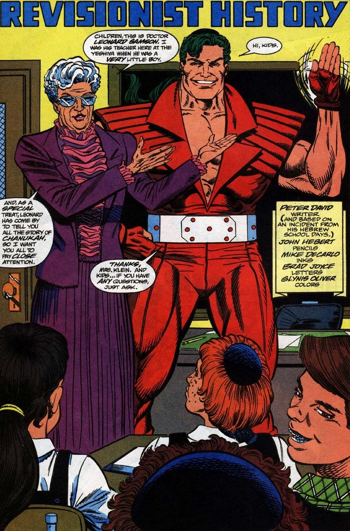When David wants to write a Hanukkah story for Marvel in Marvel Holiday Special 1992, why not use Samson?  I mean, he did write Incredible Hulk for twelve years.  And like most progressive Jews, David used a loose interpretation of the story.