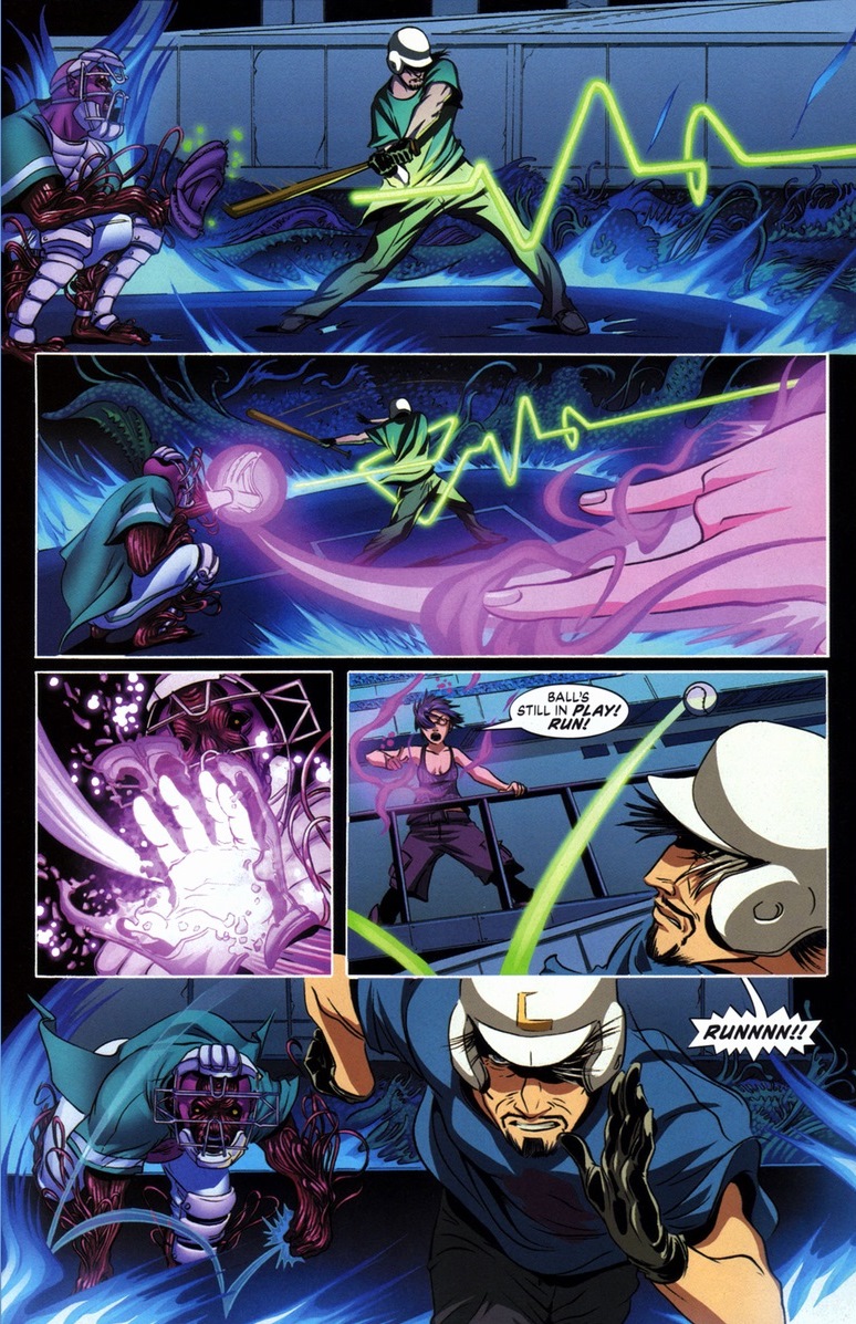 Remember, Doctor Strange can’t defeat Tul’uth with magic alone.  But as long as he helps the team win the game, he’ll save the lives of thousands of people.  Sadly, that’s going to rely solely on his baseball skills against a team of cheaters.