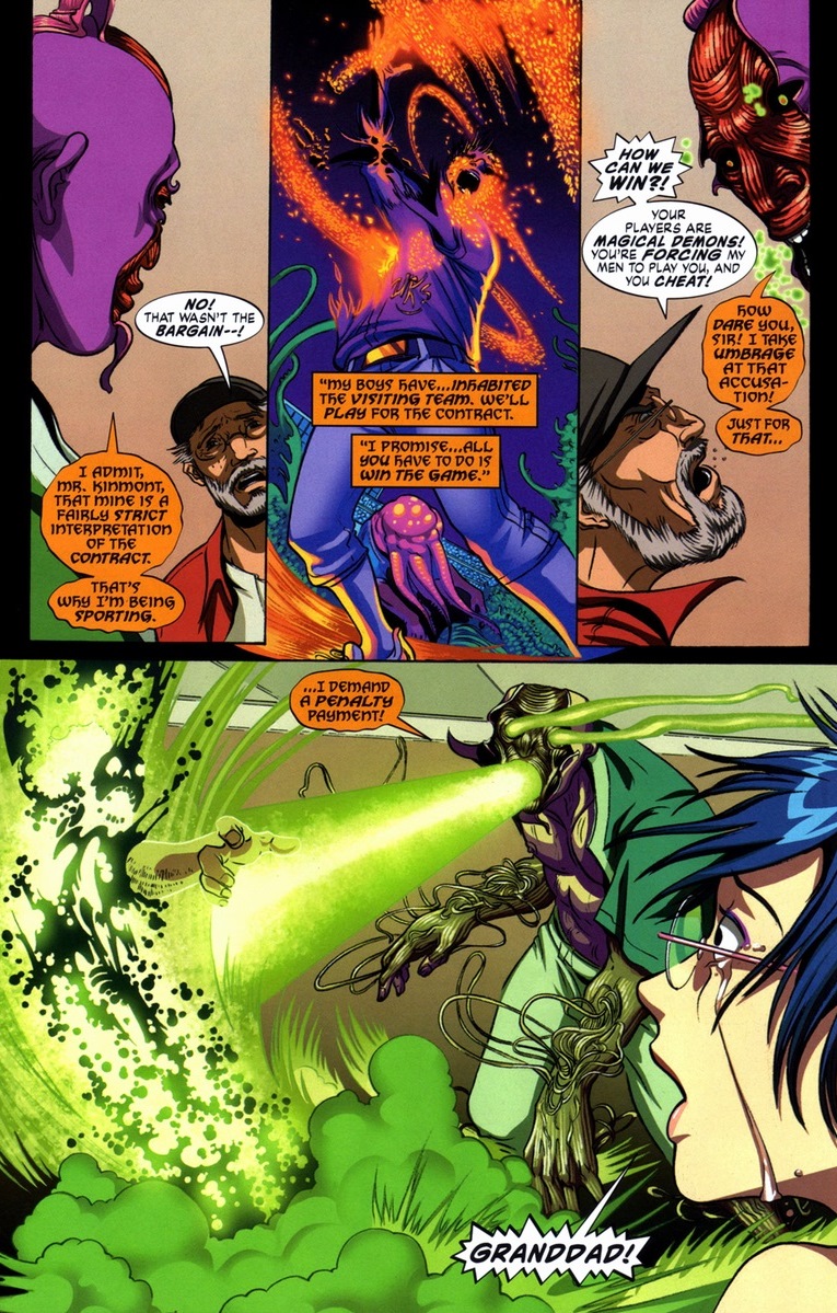 You can buy the book for the full story, but it’s essentially a deal with a demon gone bad.  If the home team loses, they also lose their souls.  Bad demonic deals happen sometimes, if by sometimes I mean all the time.  Demons are jerks no matter what adventure they show up in.
