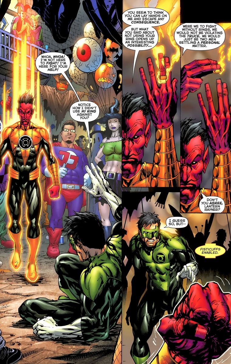Yes, this scene could be cut from my article today. A simple “Sinestro refuses to go” would save me a few pages. But I can’t, because their fisticuffs leads to this awesome Rayner moment: