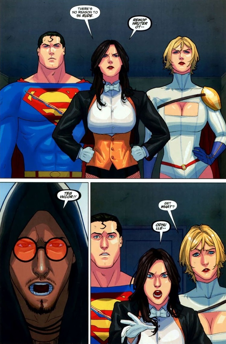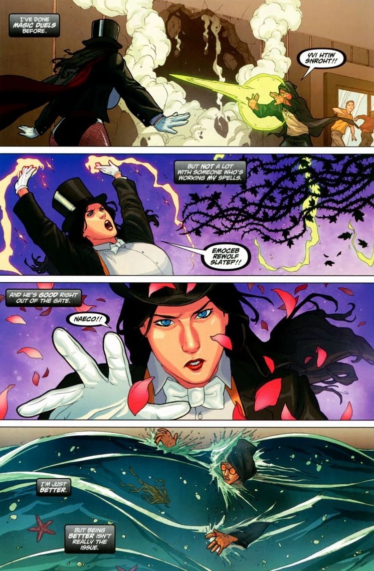 Rogue magicians always cause such problems, though a hoodie does make a suitable makeshift wizard robe. Luckily, like when the Marvel universe constantly rings up Doctor Strange during magical emergencies, Zatanna serves that role for DC — gagged or not. If you’re not familiar with her, she casts magic spells by reciting them backwards.