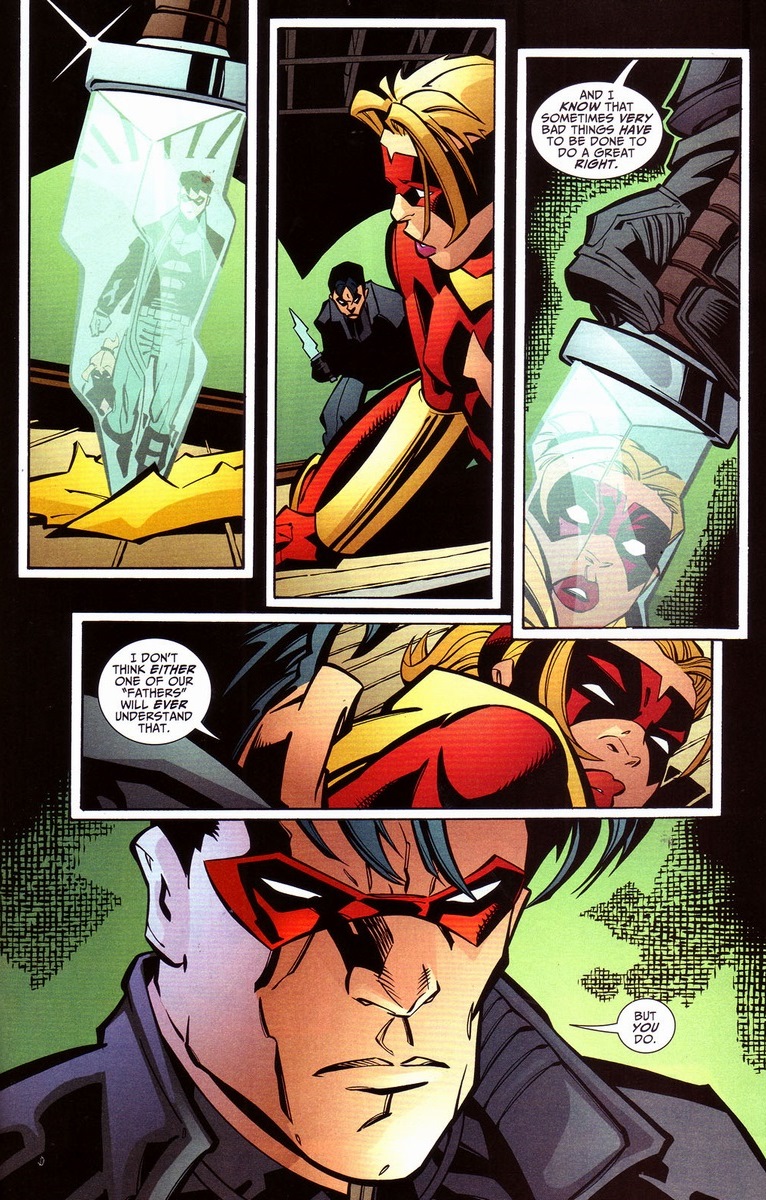 To be fair to Batman and Green Arrow, I believe the pulling kids off the street stuff plays more into giving down-on-their-luck kids a chance to become something wonderful and great instead of another bad guys they’ll have knee in the face one day. But Red Hood’s also a bit unstable, like justifying his evil actions as a means to an end instead of a several year adventure to make Bruce Wayne cry.