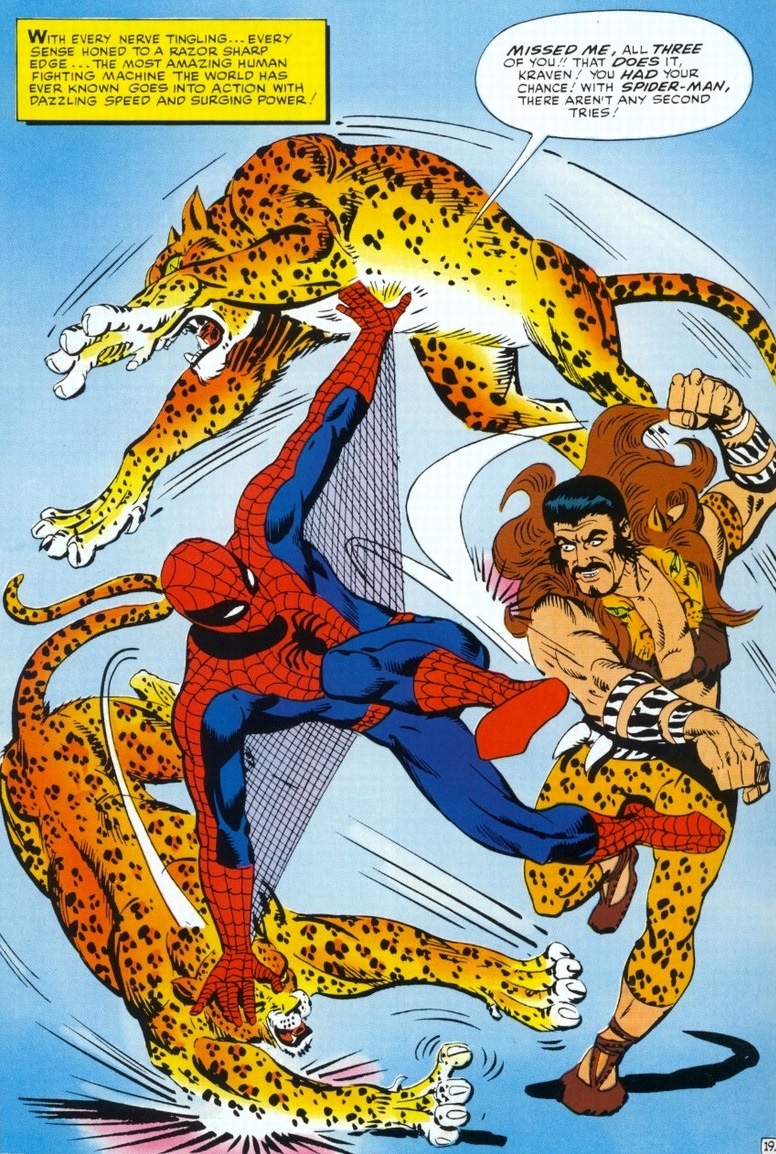 There you go, the original lineup. We have Doc Ock, Sandman, Electro, Mysterio, Vulture, and Kraven the Hunter — actually pretty close to the current lineup. Kraven’s currently off stabbing dinosaurs with spears in the Savage Land somewhere. Also, he’s cursed with immortality due to the sacrifice of an imperfect clone of Spider-Man in his resurrection ritual, but that’s a different story entirely.
