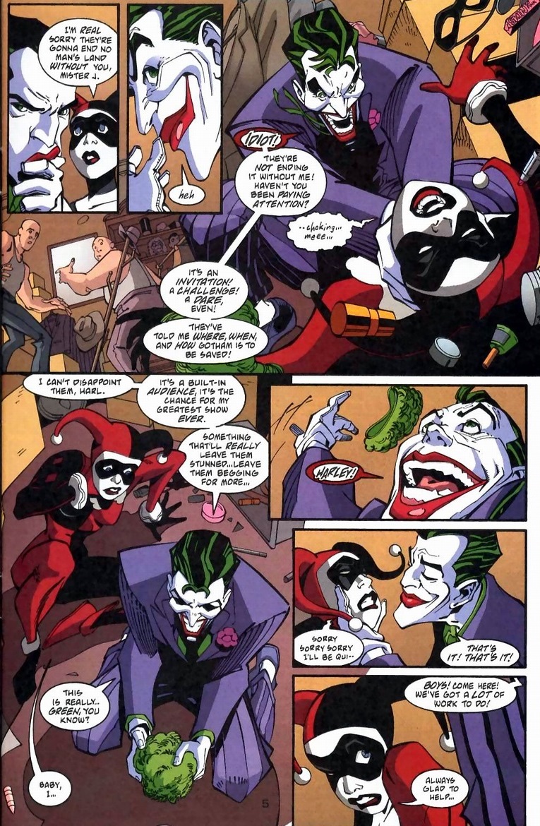 You can figure out what happens next.  Batman, known for his theatrics, swoops in just in time to save the day.  But Joker has just begun to terrorize, and if you remember the finale of NML, it’s going to be crazy heartbreaking.  Also, truckloads of babies.