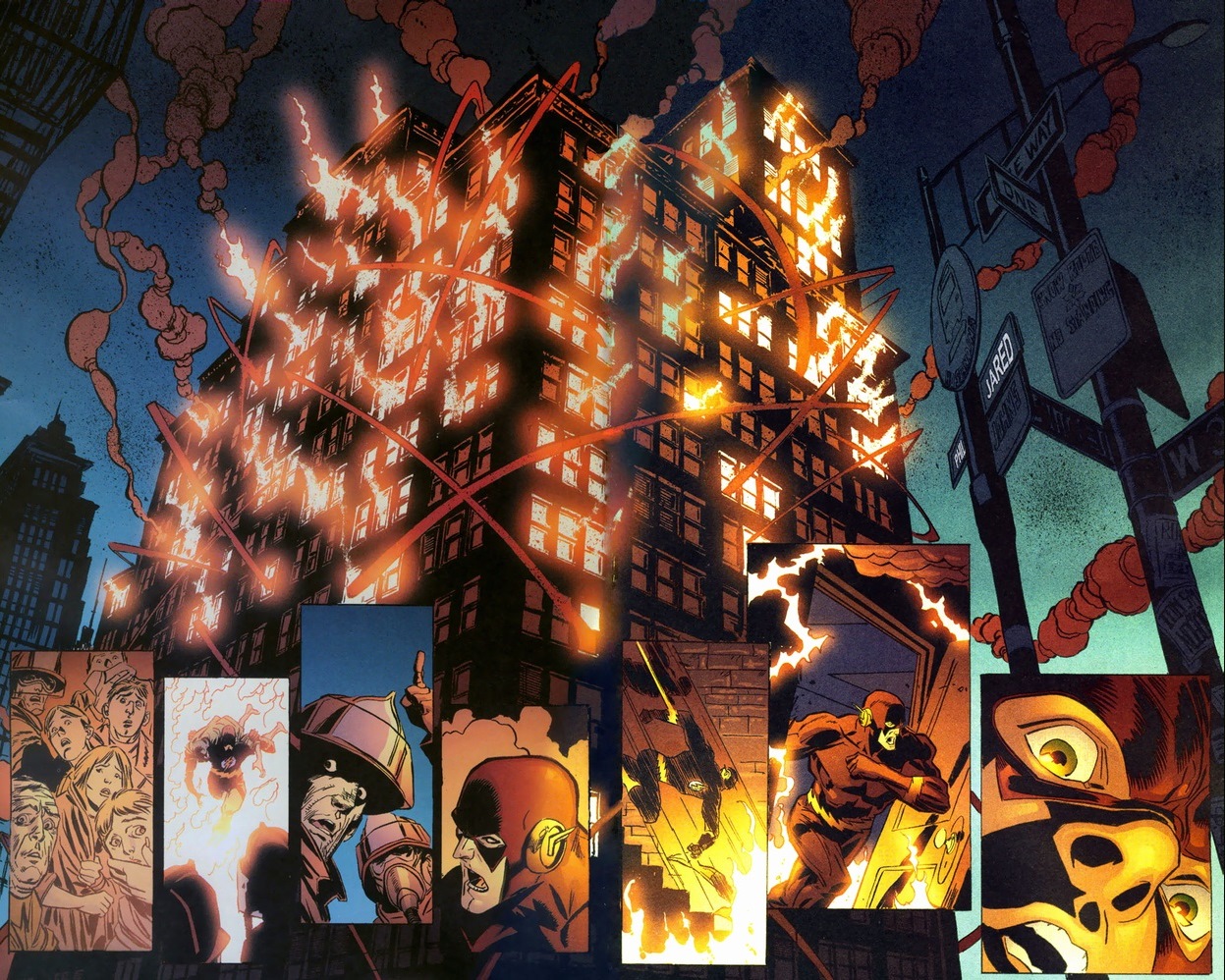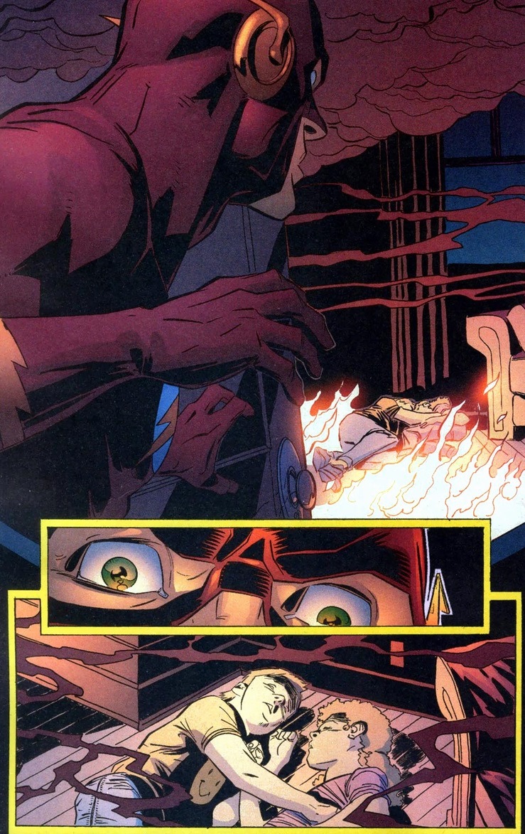 Dead children’ll ruin your day. Our hero possesses a superpower with endless possibilities (for instance, dodging boomerangs), but he can’t travel back in time to save youngsters from smoke inhalation. Actually, I think he can time travel, though the DC universe did reboot because of the Flash’s time-tampering (literary-wise anyway).