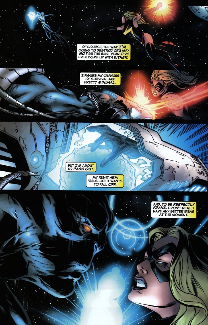 Unfortunately, before the television show airs, she intercepts an alien over Georgia. The fight lasts about two issues, all of which I’m skipping. But here’s the gist of it: