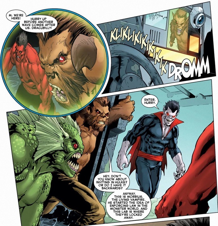 In the Marvel universe, anything below ground guarantees a swift death. The Morlocks live down there, mutated creatures live down there, and probably the Lizard as well. Also, that’s where poop goes. Luckily, a small group called the Legion of Monsters, led by the Living Vampire Morbius, fight the good fight — like when Red Hulk gets attacked by thousands of their brethren.