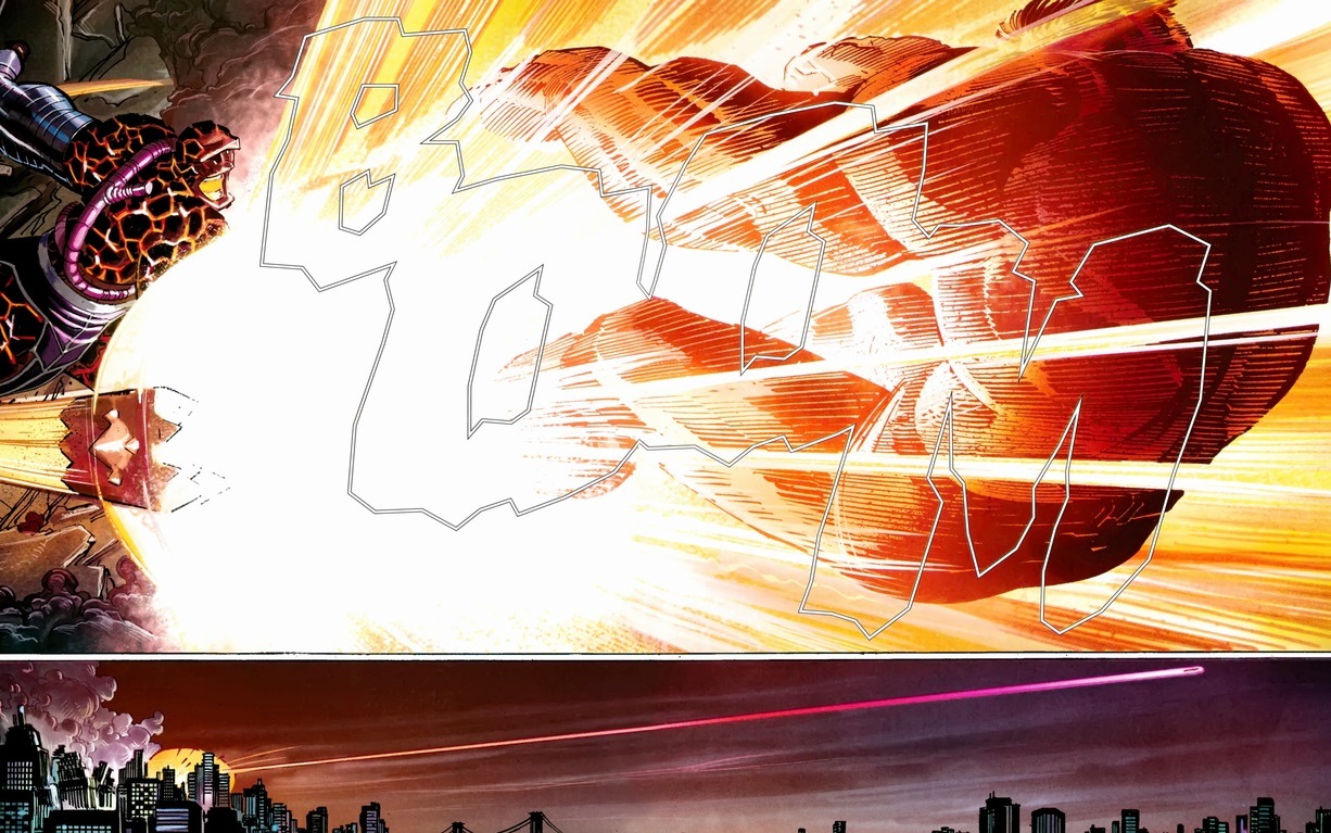 As you know, any down time in the superhero world must be interrupted by a fistfight. The Thing has his a few pages in.