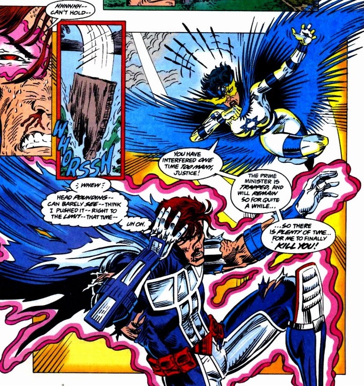 What begins involves a whole Israel-Palestinian argument between the two enemies. The poor New Warriors just want to bash in bad guys, but now that have to deal with a problem never discussed in superhero training camp: politics. I believe the purpose of this story actually serves to further the character development of the telekinetic superhero Justice, who also happens to be Jewish. Sabra’s not in the New Warriors, after all.