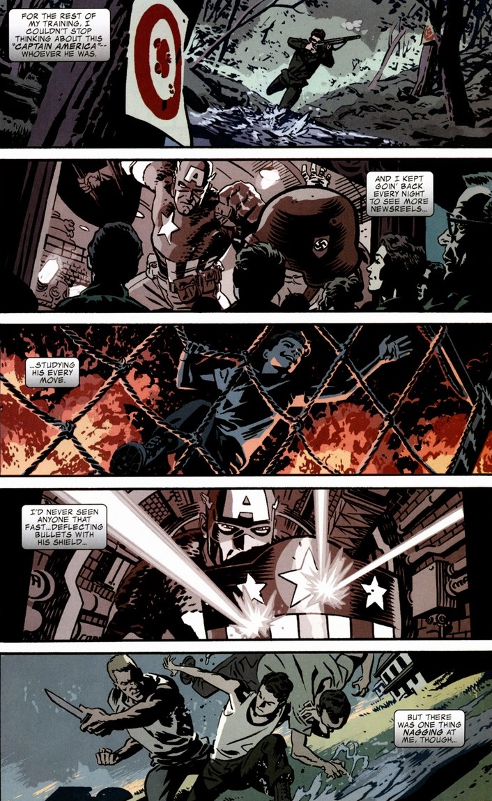 Can you see the difference yet? This Bucky happened to be a combat prodigy right from the beginning, not some bumbling kid who stumbled into Captain America’s changing room. And trust me, he gets the training we expect from superheroes who fought tanks and Nazi supervillains on a daily basis.