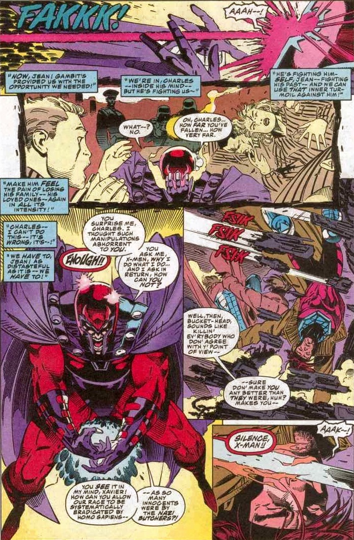 Y’know, the moment where Magneto figures, well, time to be a Hitler. Ends justify the means and blah blah blah. Then he fights the X-Men for forty pages:
