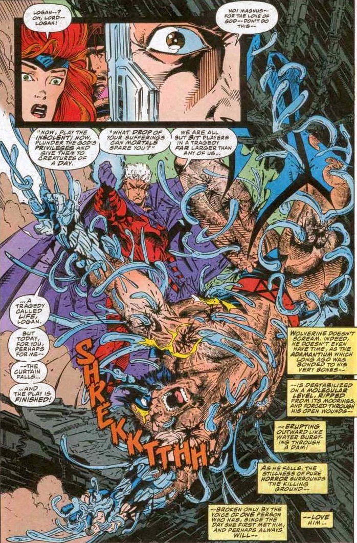 Despite Magneto’s power, he really doesn’t stand a chance against his old friend Professor X. It’s only because dear Xavier holds back and instead sends in squads of teenagers that Magneto can even secure victories. Because if the professor were to ever snap, like say when adamantium rips out of his teammate’s body, poor Magneto can’t possibly defend against that level of psychic attack. Y’see, when the Hulk gets angry, he can punch dudes into space, but mind powers work differently and the results tend to be far more cruel.