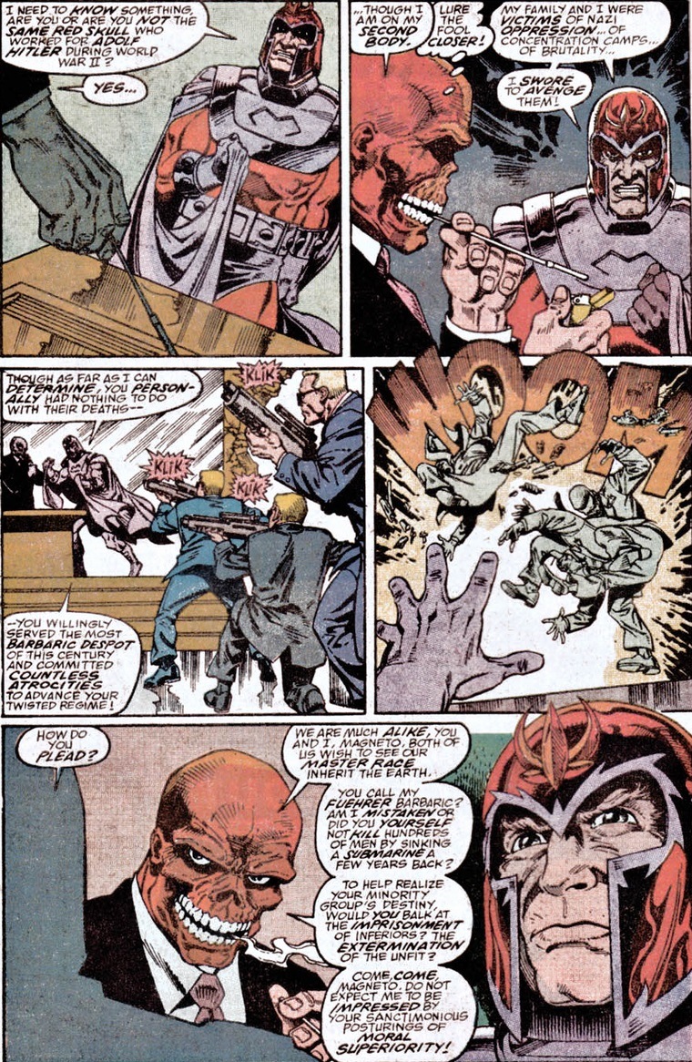 No telepaths needed to read their minds. Red Skull hates mutants. Magneto really hates Red Skull. But as the two argue, Red Skull does defend his ideals with an unfailing confidence that most delusional psychopaths possess. It’d be admirable if it wasn’t for the whole Nazi thing.