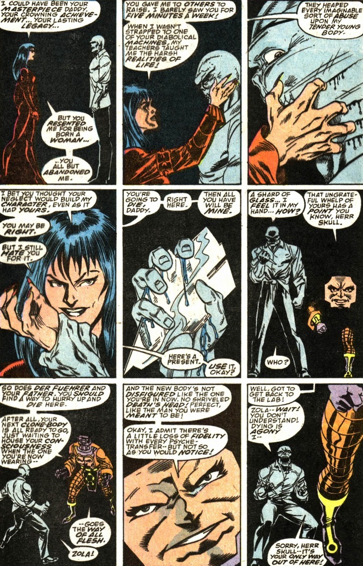 Over the next few decades, Red Skull’s disembodies hallucinations have branched out on their own. His daughter becomes Sin and later the next Red Skull.  Arnim Zola develops an entire alternative dimension and even fathered/created a few kids.  Though luckily, no Hitler developments.