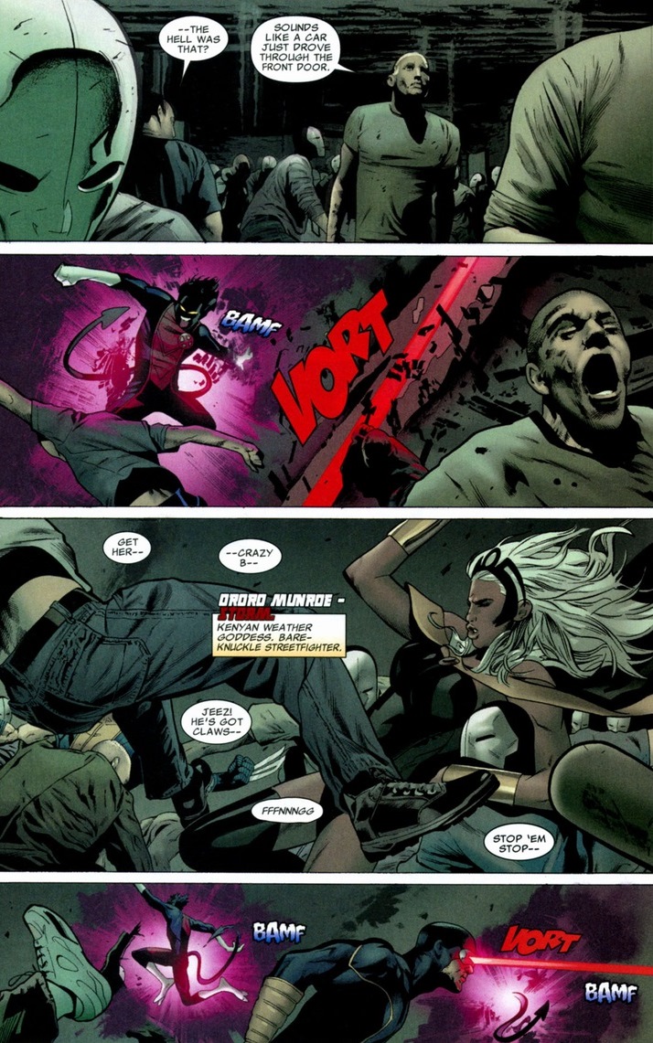 Yeah, welcome to the world of mutants. As the X-Men symbolize minority discrimination in comic books, we can all probably relate to their struggle for acceptance on some level. And while we don’t have the ability to lift buildings or summon lightning storms, we can certainly take solace that those who get attacked for being different have the ability to retaliate. And by retaliate I mean destroy the hopes, dreams, and definitely internal organs of anyone who dares target them. So yes, these bigots took down a young girl in a surprise attack, but they know she has teammates, right? Big scary teammates with superpowers and grudges. Meet the new breed of X-Men in Uncanny X-Men #501-503, written by Matt Fraction & Ed Brubaker and drawn by Greg Land.