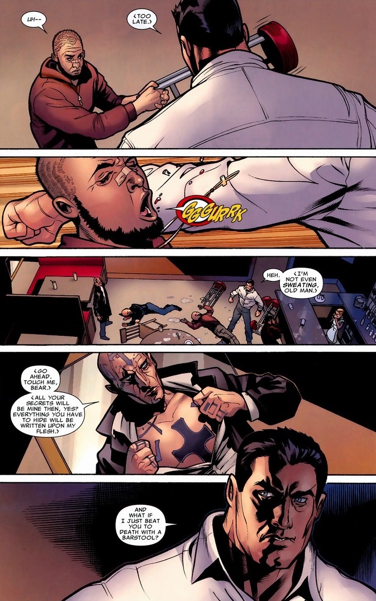 If you don’t mind me skipping some, Colossus figures going undercover as our antagonist’s lackey would produce plenty of people to punch and even more evidence to put away his extortionist for a very long time. And like all good superhero secret missions, this one starts with Colossus proving his worth. By punching.