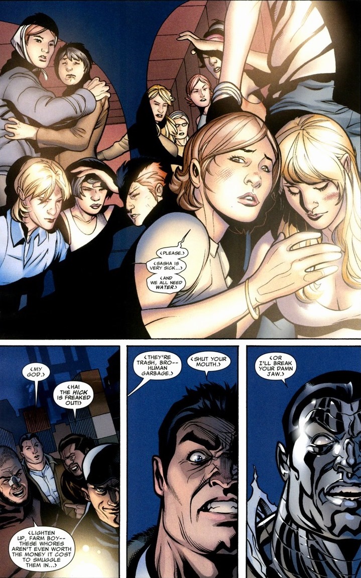 With a dock full of women under his care, he takes them to the only place he knows can keep them safe: the X-Men’s mansion. Because while Cyclops doesn’t really want to take care of dozens of former slaves, his moral obligation will force him to say yes. It’s the same reason Spider-Man has to leave dates early if a police siren goes by. The same reason Mr. Fantastic has to pause his research when a dimension is in trouble. The same reason Wolverine has to put down his beer when a fight breaks out.
