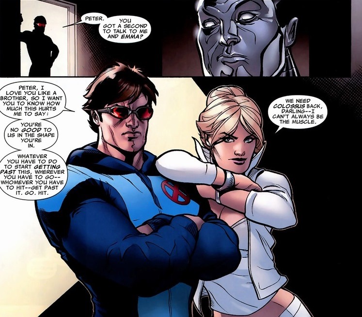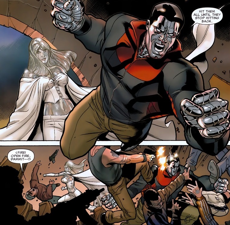 Colossus and Emma Frost make for a strange superhero team up. Besides their steel/diamond armor, they don’t have much in common — though lately Colossus has been showing off just as much skin. But if one unbreakable, unstoppable mutant is going to be a tough fight for our bad guy’s henchmen, two’ll make it completely impossible.