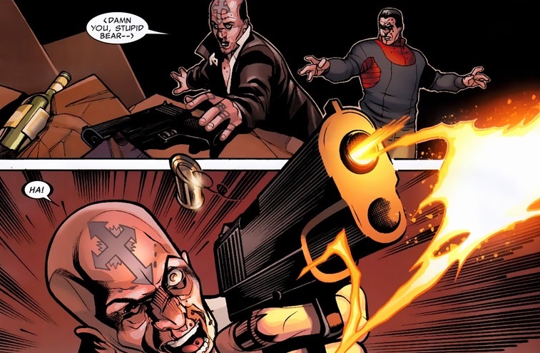 Even former Russian gangsters decide to pack up for the good ol’ USA once in a while. The old man has a super cool mutant power — upon touch his tattoos show all the inner secrets of the person grabbed. An information broker gaining his infomation from extortion and violence. And most importantly, Colossus has a personal connection to this man.