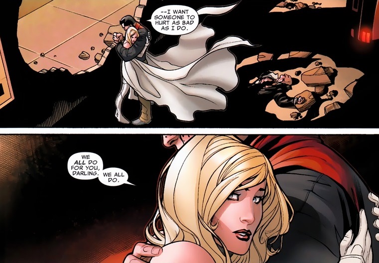 Kitty returns to Earth from her bullet prison fifteen issues later. But you know what would help ease Colossus back into his normal crime-fighting, X-Men-filled life? Closure. Like the closure that lasts forever.