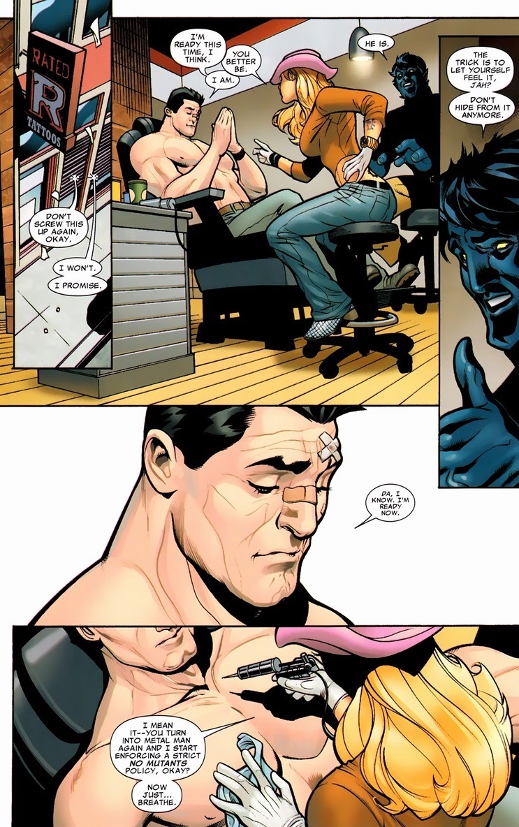 Last time I brought up Colossus, he had been fully influenced by the Phoenix Force — turning him into a total jerk. He verbally abused his on-and-off girlfriend Kitty Pryde and almost physically destroyed the entire school she taught at. That’s not fair to Colossus, so I’m going to make it up to him today with Uncanny X-Men #504-507, written by Matt Fraction and drawn by Terry Dodson.