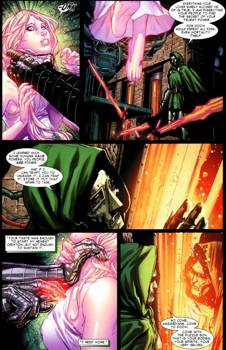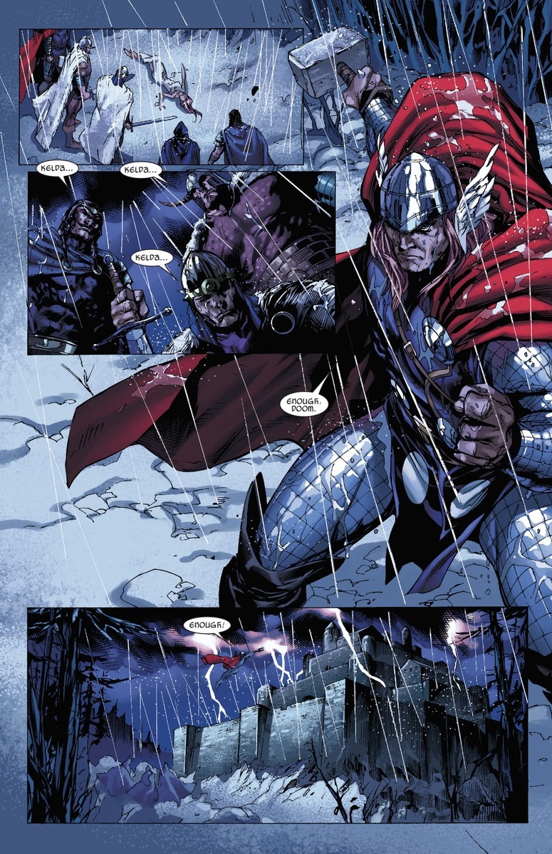 Luckily, Kelda’s death wouldn’t serve the purpose Doctor Doom hopes it would. He’d much prefer to use her to mock and belittle Thor and friends instead of simply stuffing her body in a demon dimensional portal or something and forgetting about her.
