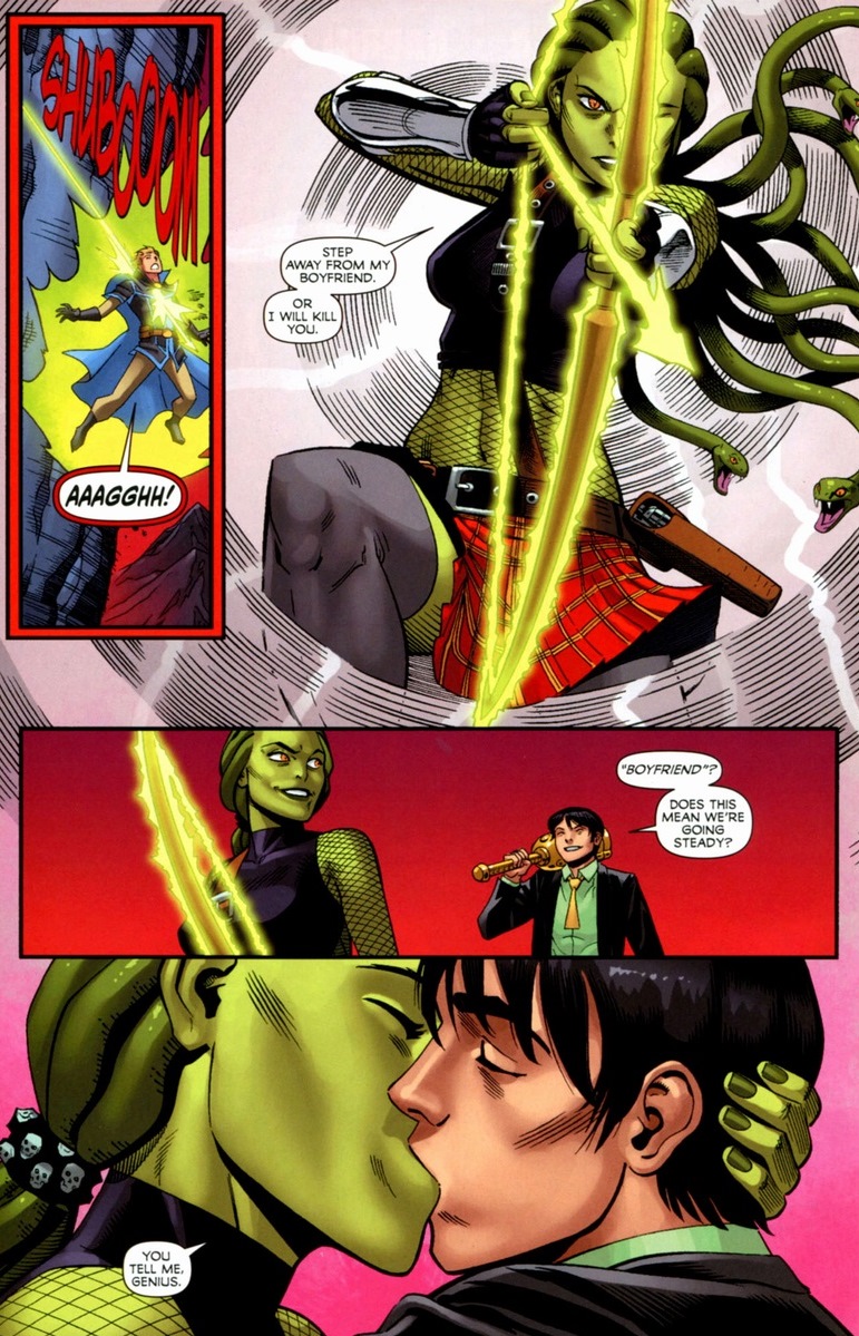 Is this the ending you hoped for?  What other literary medium would have the former Amazonian queen/gorgon snake lady kissing the Korean teenager Prince of Power super genius?  And right after she shot a magic arrow at a traitorous Asgardian god mere moments away from accessing the omniscience of infinite multiverse knowledge?  This isn’t exactly The Notebook.