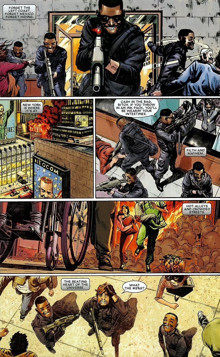 As we start, Moon Knight had been exiled to Mexico by Osborn after being framed for murder (though he did kinda murder, it’s a tricky subject). But we know the border towns can’t keep Moon Knight for long, plus a full-body armored costume must be hell in that Mexican sun. So he returns to New York City, where he can patrol the streets and stop bank robberies. Criminals never seem to learn that crimes rarely succeed in a city with legitimately hundreds of superheroes flying, swinging, and running around.
