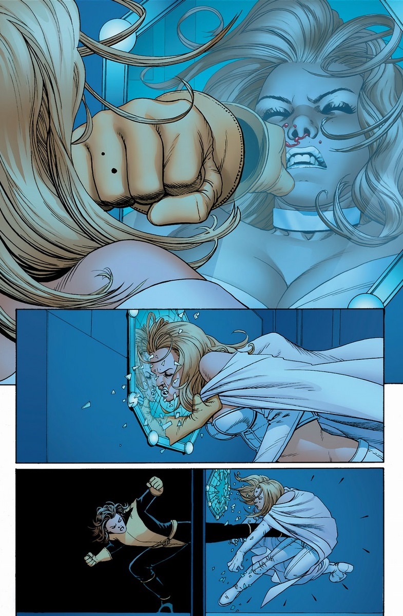 One of Cyclops’ lovers has once again become evil.  How sad.  That man likes a certain type of lady, I guess. With Cyclops out of the picture, today it’ll be Kitty Pryde who’s going to punch the crap out of Emma Frost.  As a quick reminder, notice the similarities between the famous panel from last article and today’s homage?