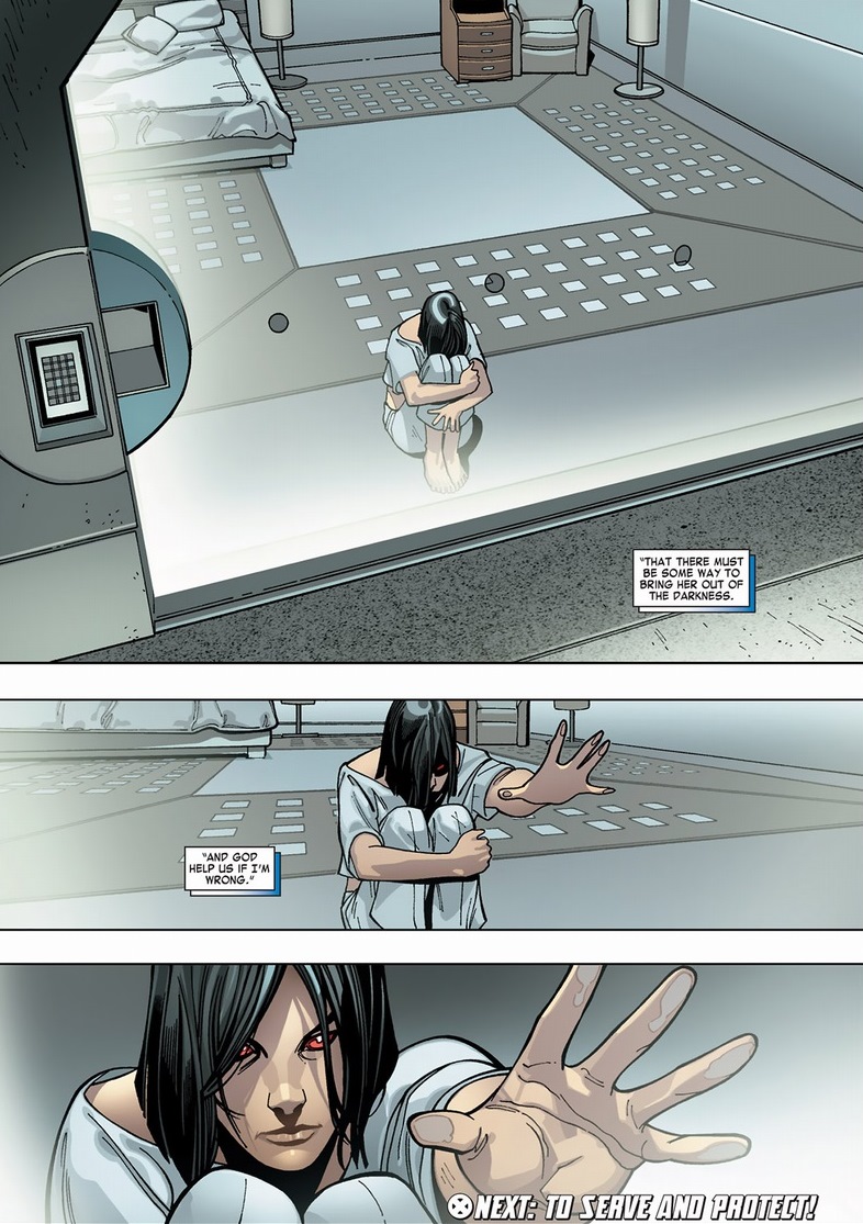 Vampire Wolverine has the benefit of being unfiltered and evil as opposed to his normal unfiltered and curmudgeony. Nowadays, the X-Men preside as the Batman of the Marvel universe, in that they have plans for every single possible scenario — poor planning prevents the extinction of the few hundred remaining mutants against almost ten thousand bloodsucking monsters and Vampire Wolverine. Anyway, they win. Go buy the book for all that. Most important to today’s topic: