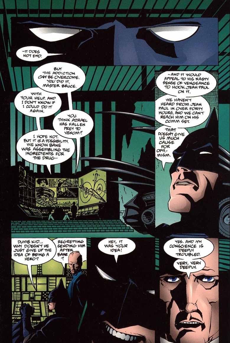 It’s nice for Azrael to get some therapy in before he and Bane kick each other. By the way, for all of Azrael’s efforts, Bane escapes Blackgate Prison pretty soon after this to form his own gang during No Man’s Land. Next time, we’ll jump back to some more venom coverage. Want to see Batman with a full beard? Of course you do.