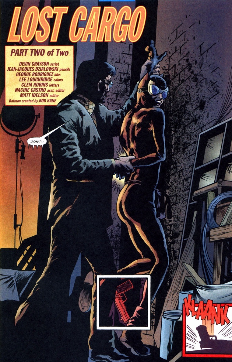 Posted: 11/02/2014 Filed under: Characters, DC 1 CommentAs Batman and Catwoman’s relationship goes from adversarial to passionate to cold to adversarial again, rinse and repeat, in 2004 they mainly just try to stay out of each other’s way. For reference, this story takes place a month or two before the DC event Identity Crisis, where Zatanna reveals she magically-influenced Catwoman to be a superhero. But before Selina Kyle’s breakdown, we get this lovely story from Batman: Legends of the Dark Knight #177-178, written by Devin Grayson and drawn by Jean-Jacques Dzialowski.