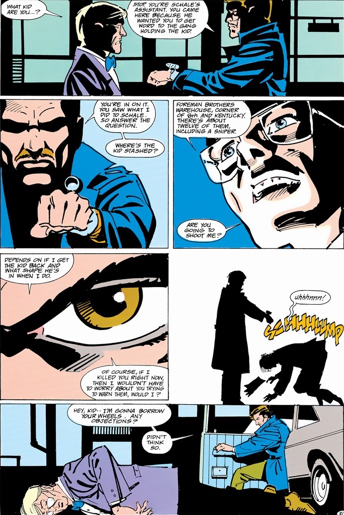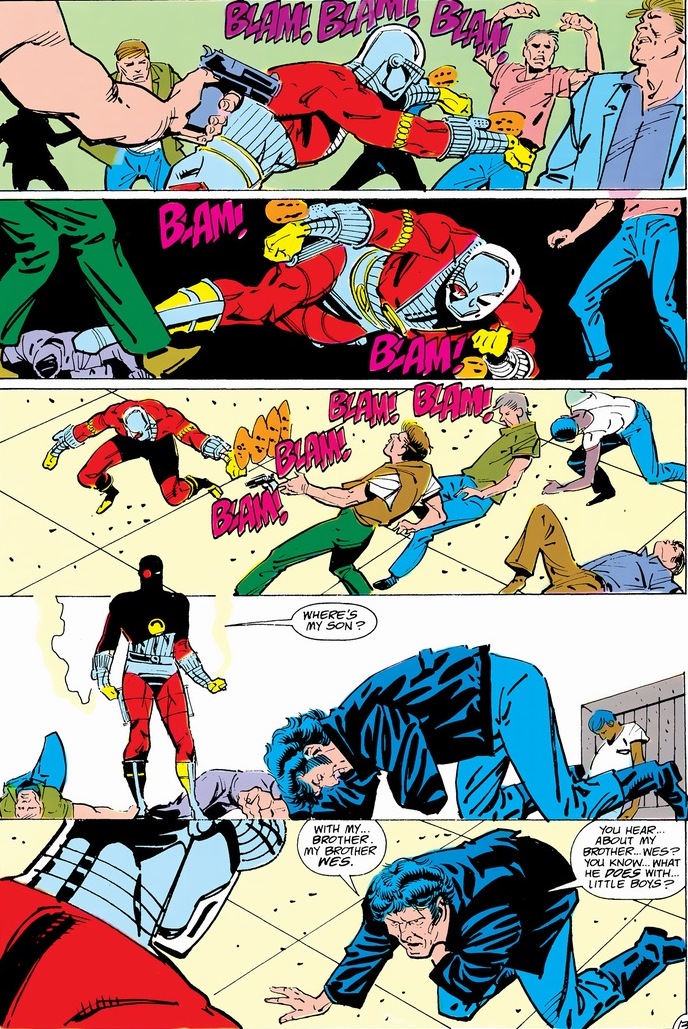 Surprise! Despite being a terrible father, Deadshot has a son (though it is in the title of the article). You know how bad guys outnumber good guys like 10-to-1 in the comic book world? If they just united, they could easily take down all the do-gooders and destroy/rule the world to their liking. But the problem with being evil is that instead of teamwork, bad guys’ll do bad things to each other. Because they’re bad. That’s how it works. Most importantly, the stakes go much higher than a simple kidnapping — this is gritty post-1986 we’re talking about. Meet the pedophile: