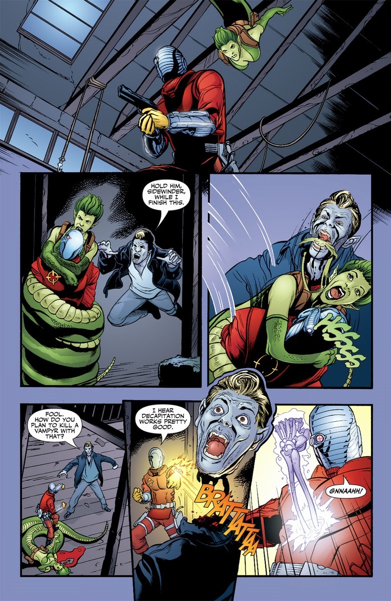 Unfortunately, the status quo must be restored, and that includes Deadshot returning to his life of apathetic crime.  Comic book bad guys can’t get happy endings (well, I guess neither can the good guys).  At least in his battle royale, a horde of embarrassing supervillains get taken off the map.  Green Arrow’ll need to send Deadshot flowers after this, just for saving him a good three or four bank robberies of baddies to clean up later.