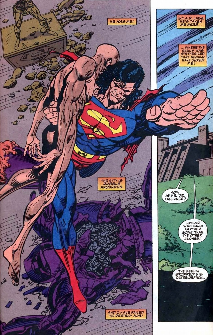 Y’see, I’m not a scientist, but clone bodies tend not to hold up as well as normal, birthed bodies. Because of science. Something about artificial creations (and plot) makes these atrocities age badly. Accelerating growth or whatever. Look, the reason for Lex Luthor’s clone body starting to fail isn’t important – the comic book world just demands that you accept it is.
