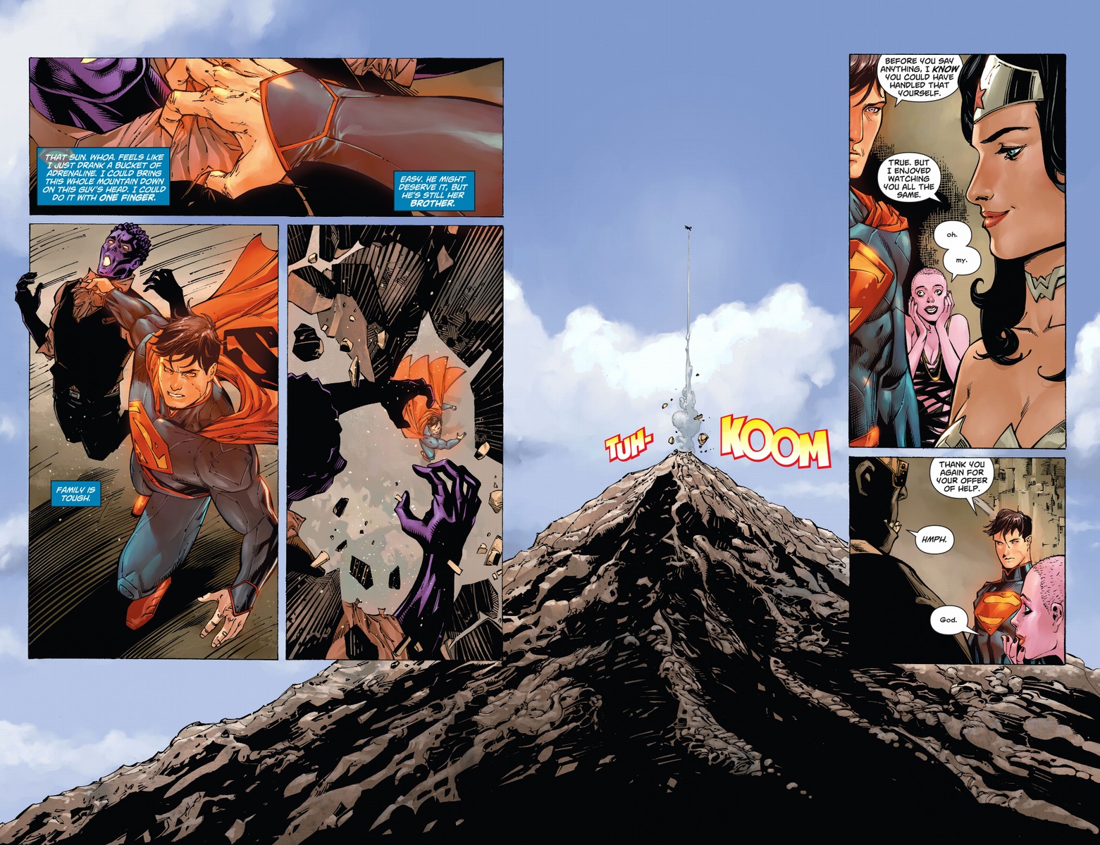 For my final article, I want to show you a scene that I believe encompasses everything magnificent about comic’s modern age. We live in a time of brilliant storytelling, frenetic excitement, unbridled joy, and battles previously unmatched in intensity and scope. Without commentary, I present to you the perfect representation of what I know is the unarguably best era of comics ever seen before. From Superman/Wonder Woman #2, written by Charles Soule and drawn by Tony S. Daniel, it’s fun, bloody, enthusiastic, and provides the brilliant characterization we secretly adore more than the violence. So just sit back and enjoy. My god, do you deserve it – we read comics to become happier, friendlier, smiley-er people, after all. That’s the entire point of entertainment.