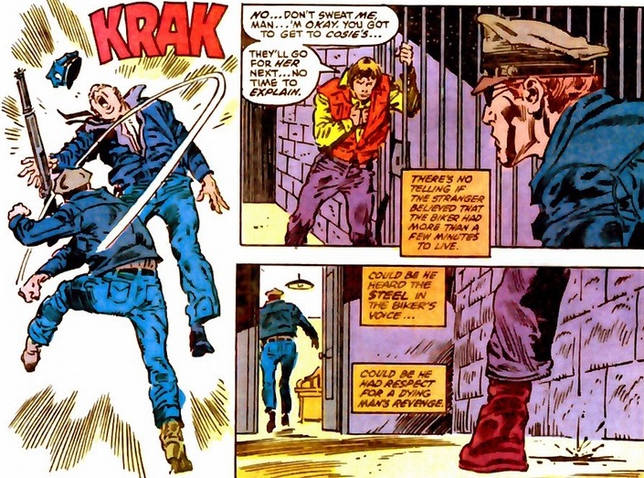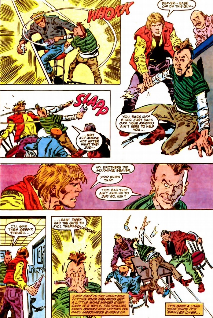 While Scalphunter’s knowledge of philosophy and art borders on extreme apathy, he still notices a weirdo when he sees one. Bad vibes are bad vibes, even from someone who compliments his pig-mush of food. Unfortunately, you can imagine the story doesn’t end with Scalphunter riding his motorcycle freely into the night. That’d be a terribly boring tale.