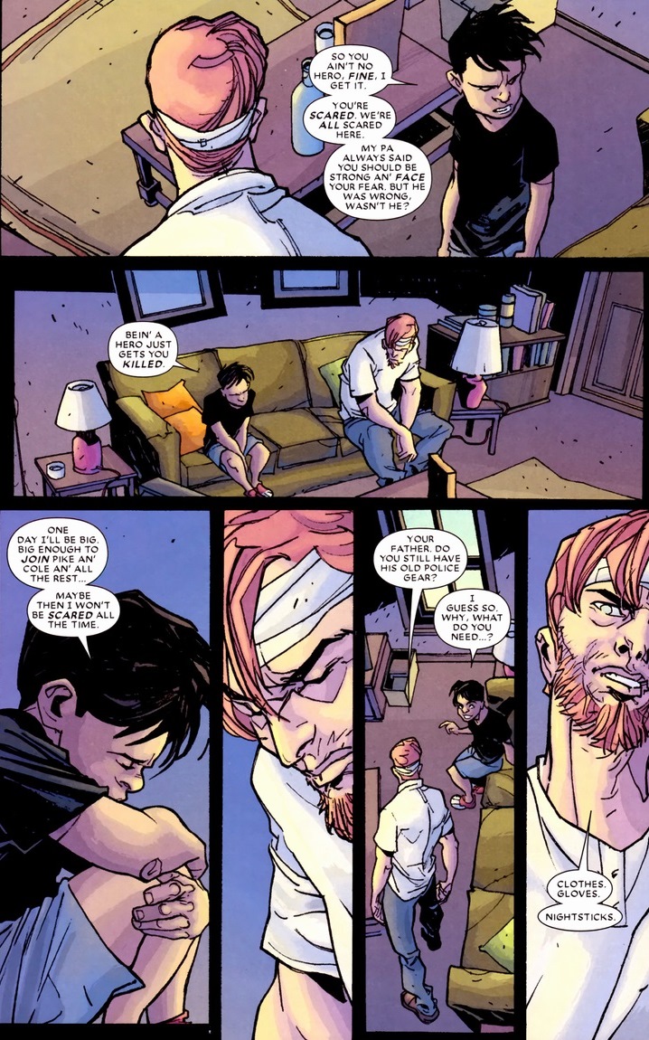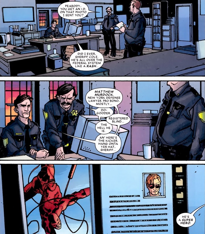 Buy the issue (somewhere) for the full genius and all the fleshed out development I skipped over. Remember this story on Wednesday for a modern day retelling in which Daredevil learned his lesson twenty years before about watching from the sidelines.