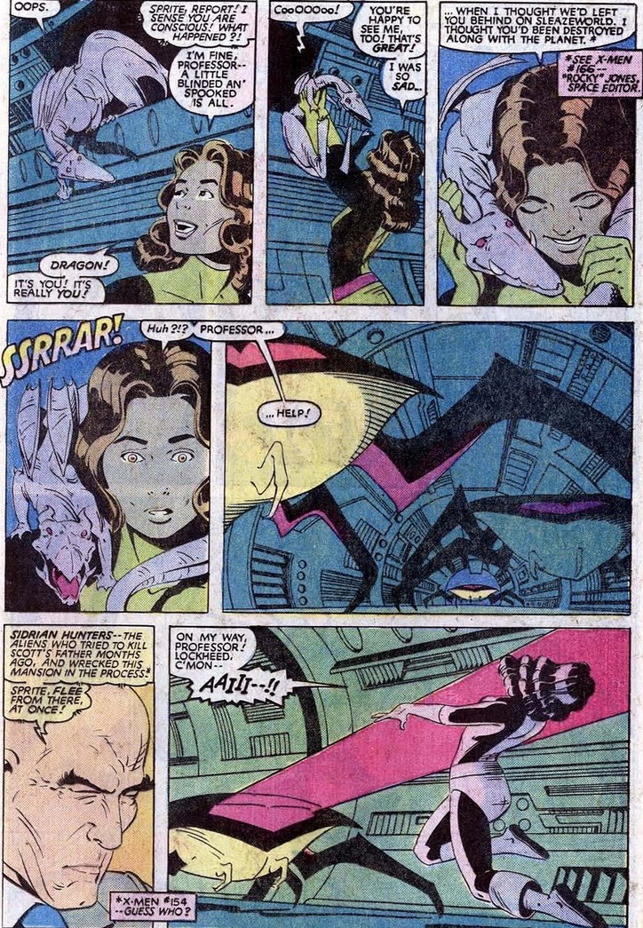 After a bunch of crazy stuff happens, Professor X gets kidnapped and brainwashed by the Brood aliens and gathers up a team of pubescent mutants to sacrifice to these Broods. Happy ending as you figure, but now Professor X has to decide what to do with this new group. In Uncanny X-Men #167, written by Chris Claremont and drawn by Paul Smith, he figures he can kill two birds with one stone instead of justifying sending a child into deadly combat: