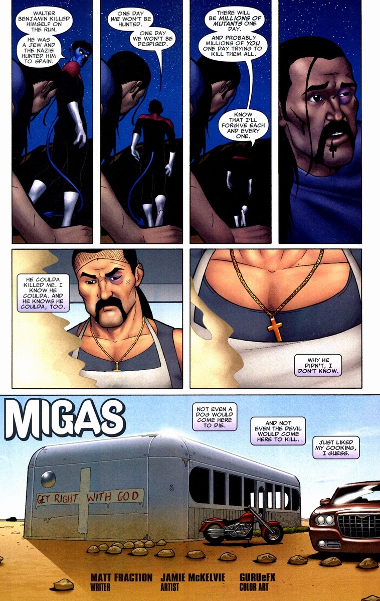 Scalphunter and Nightcrawler meet one more time in X-Men: Divided We Stand #1, a compilation of short stories. Ours is written by Matt Fraction and drawn by Jamie McKelvie. On the run, our former supervillain decides to make a living cooking in a desert diner.