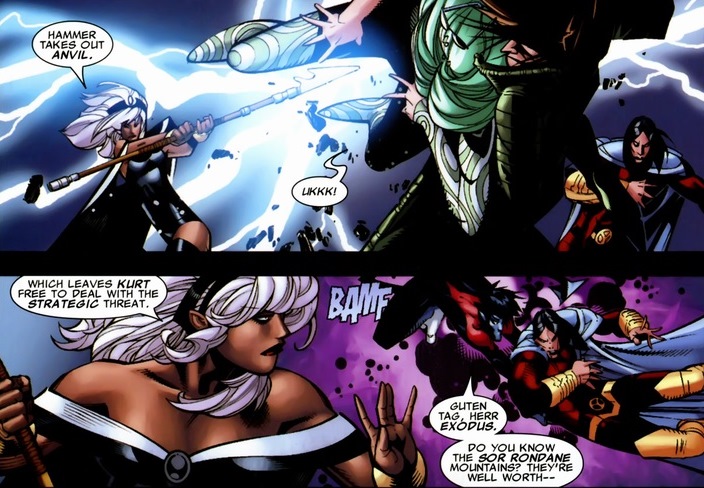 The only information you need to know from that page scene is that Johnny Storm wears briefs. Also, our dear Nightcrawler gets friend-zoned by Storm in record time: