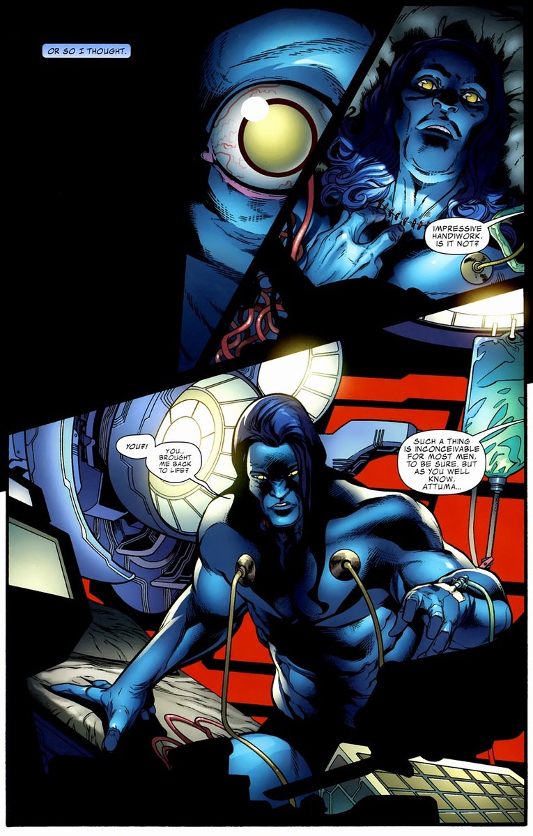 Attuma, an Atlantean warlord, used some giant octopus creatures/mechs/whatever to take down New York City, where 50% of Marvel’s superhero population lives. As you can see, it ended badly. Keep in mind that bottom panel is the entire fight from that issue — Sentry simply flies down, beheads the supervillain, and continues about his day. So it may be hard to imagine why anyone would want to bring Attuma back to life. Well, there is that one guy.